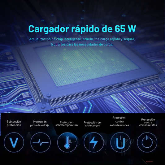 Adaptador Cargador Multipuertos 65w Carga Rápida (3usb, 1 C)