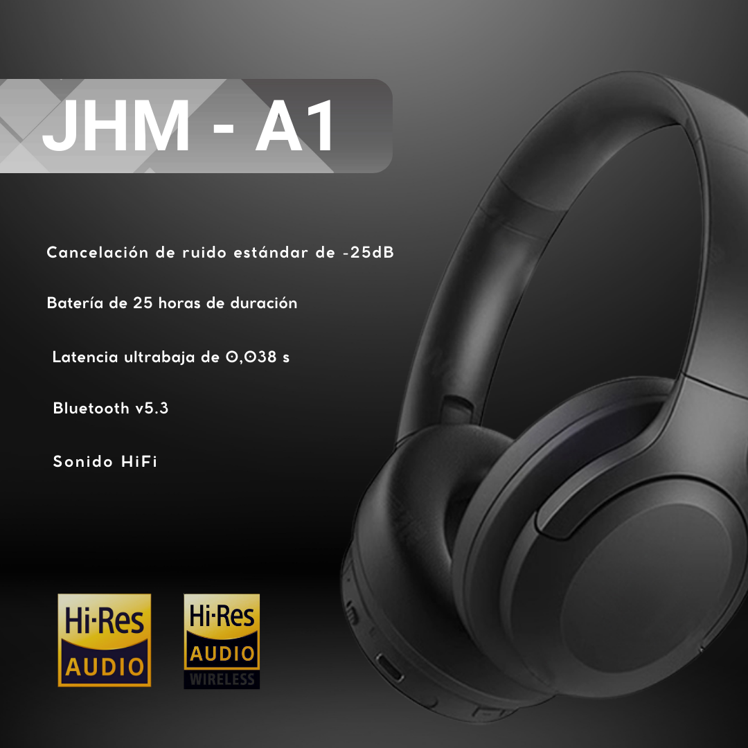 Los Audífonos JHM-A1 son dispositivos de audio inalámbricos con tecnología avanzada de cancelación activa de ruido (ANC), diseñados para ofrecer una experiencia auditiva inmersiva. Son plegables, cómodos, y compatibles con cualquier dispositivo Bluetooth.