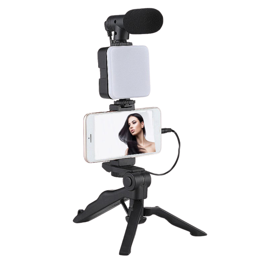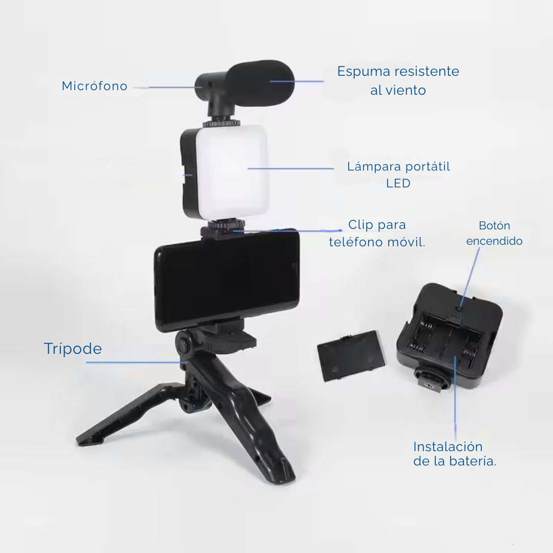 Es un kit completo de creación de contenido diseñado para mejorar la calidad de tus videos, transmisiones en vivo, videollamadas y grabaciones para redes sociales. Incluye todo lo necesario para lograr una imagen bien iluminada, un audio claro y una sujeción estable de tu smartphone.