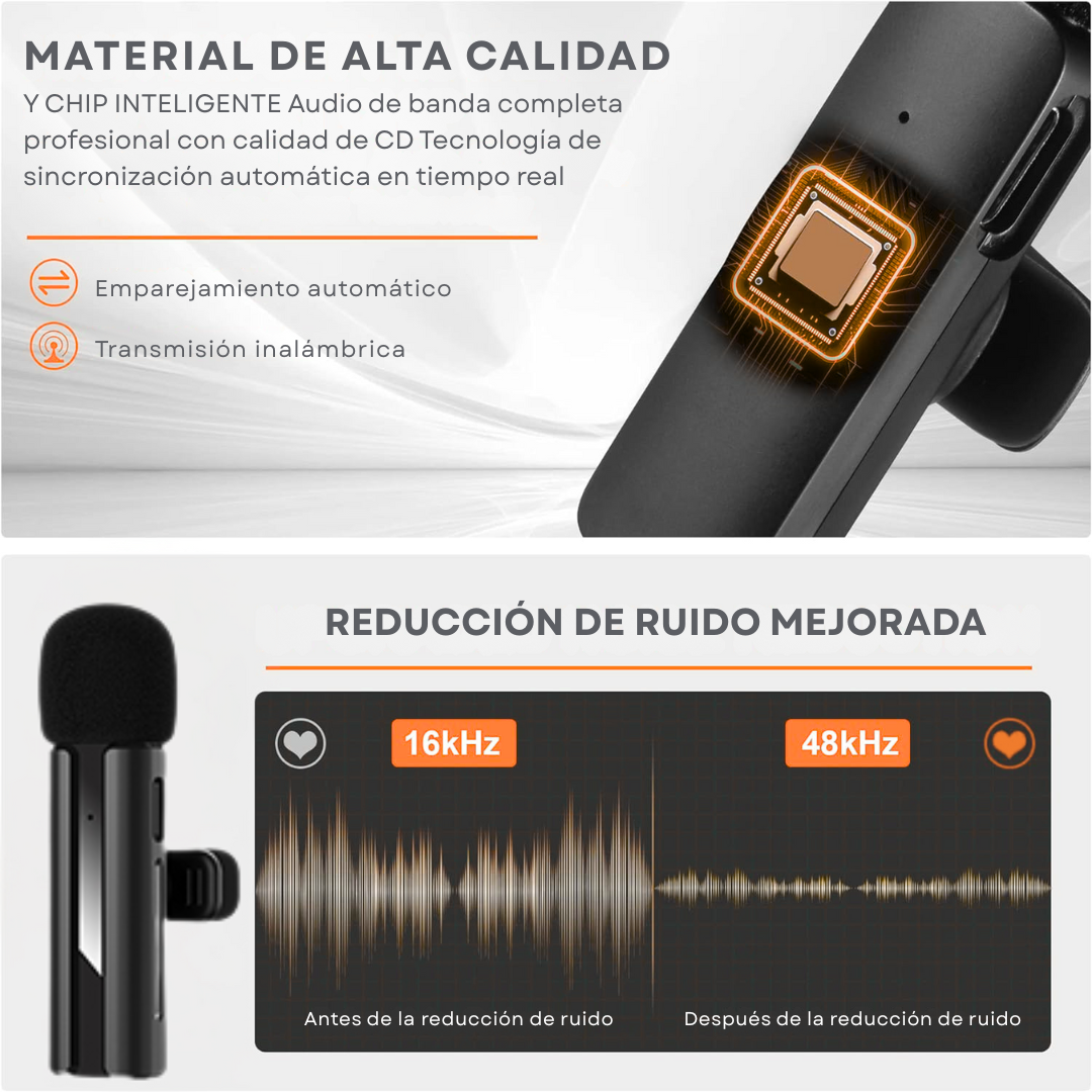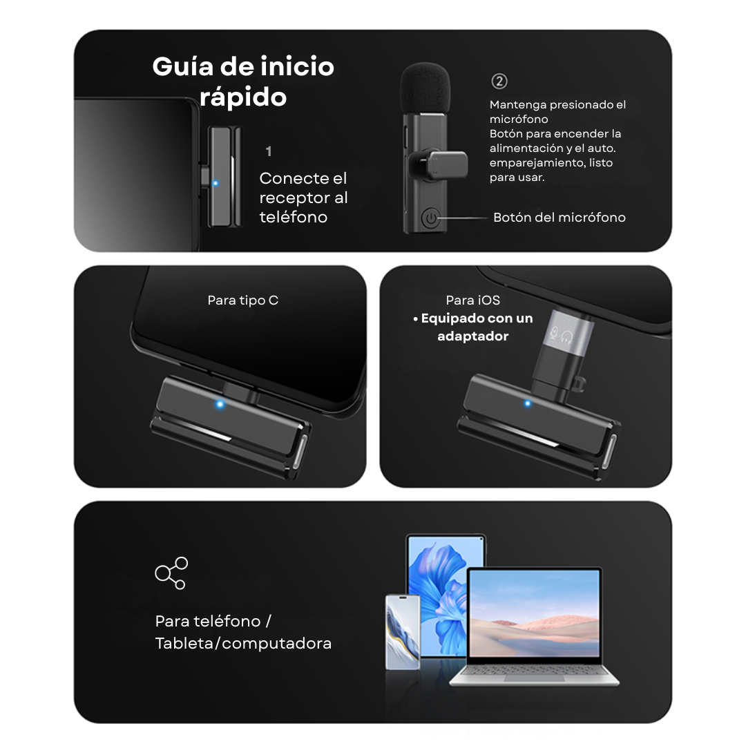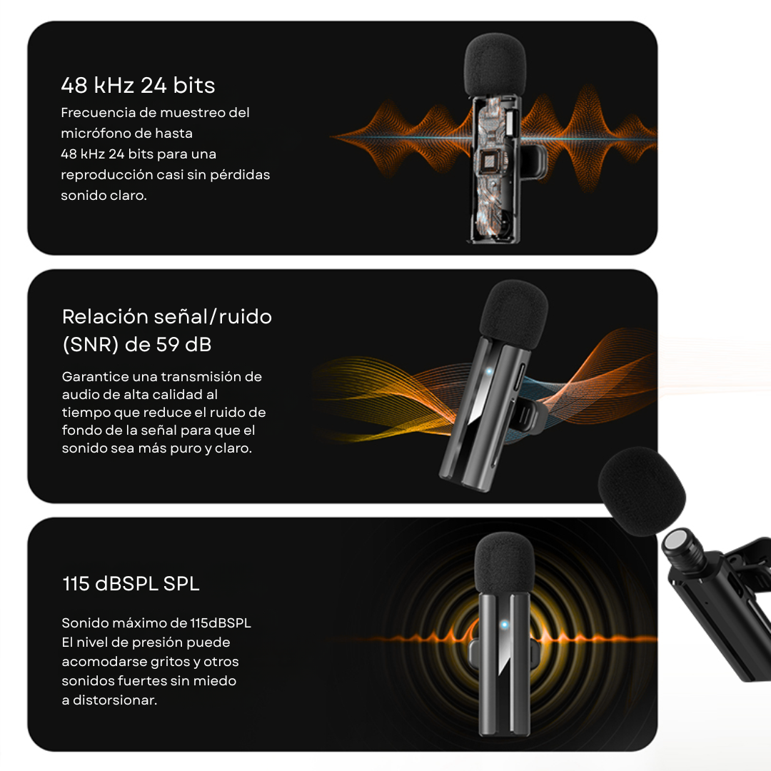 Micrófonos Solapa Inalámbricos H02 Entrada tipo C o iPhone + Estuche
