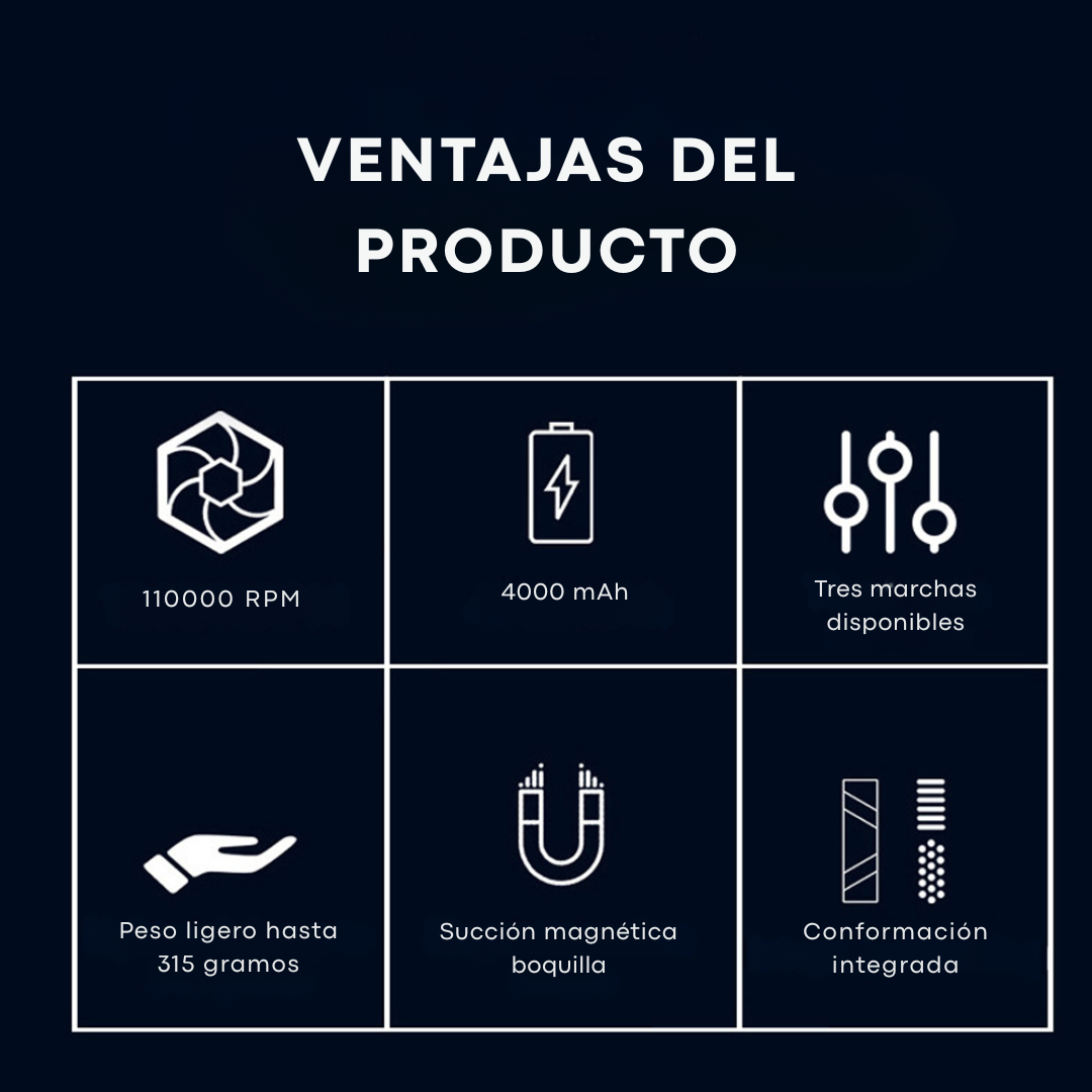 Motor turbo de 110000 RPM para una limpieza profunda y rápida.