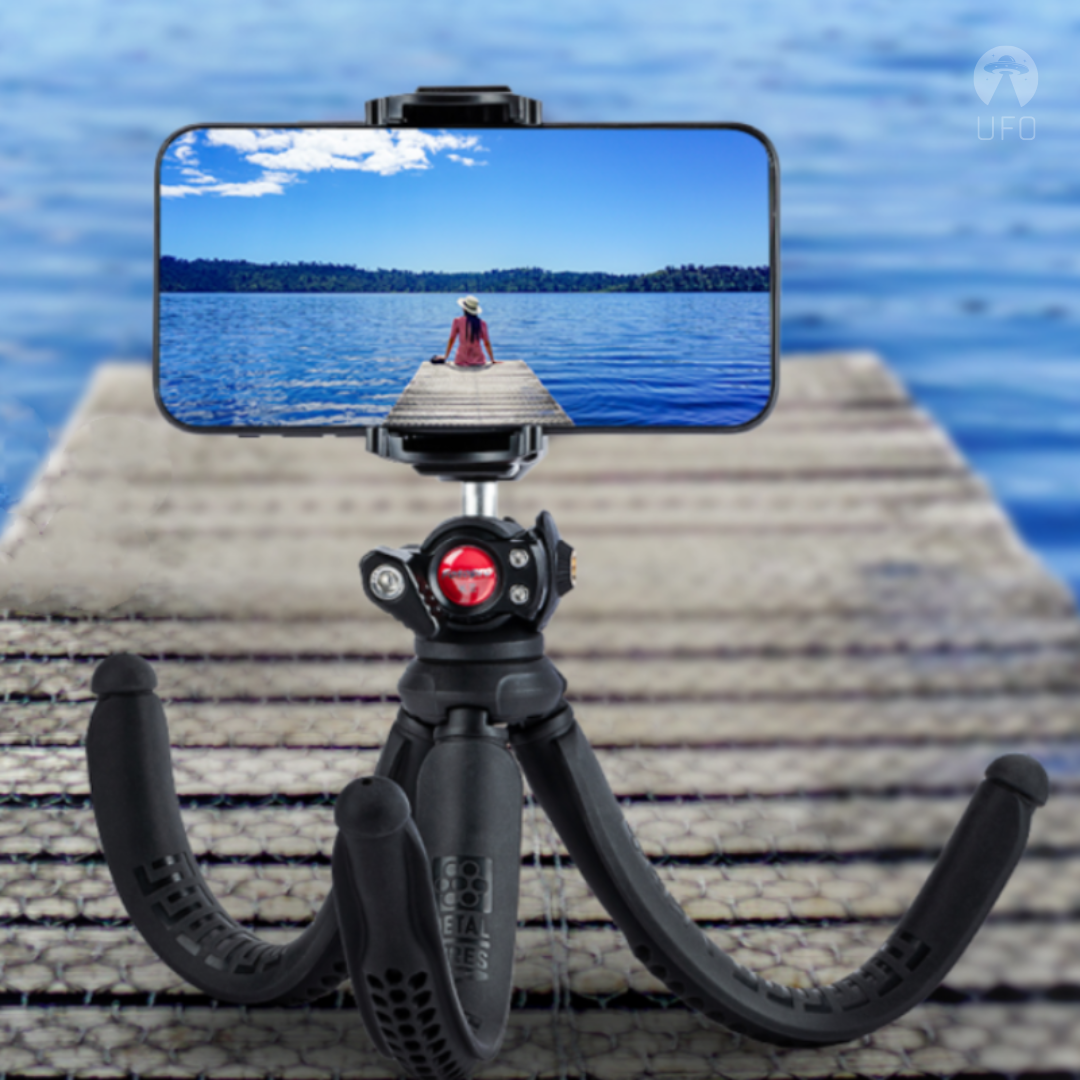El trípode flexible tipo pulpo es un soporte versátil diseñado para adaptarse a cualquier superficie, ya sea plana, irregular o tubular. Sus patas ajustables y recubiertas de material antideslizante permiten fijarlo de manera segura para capturar imágenes y vídeos desde ángulos creativos.