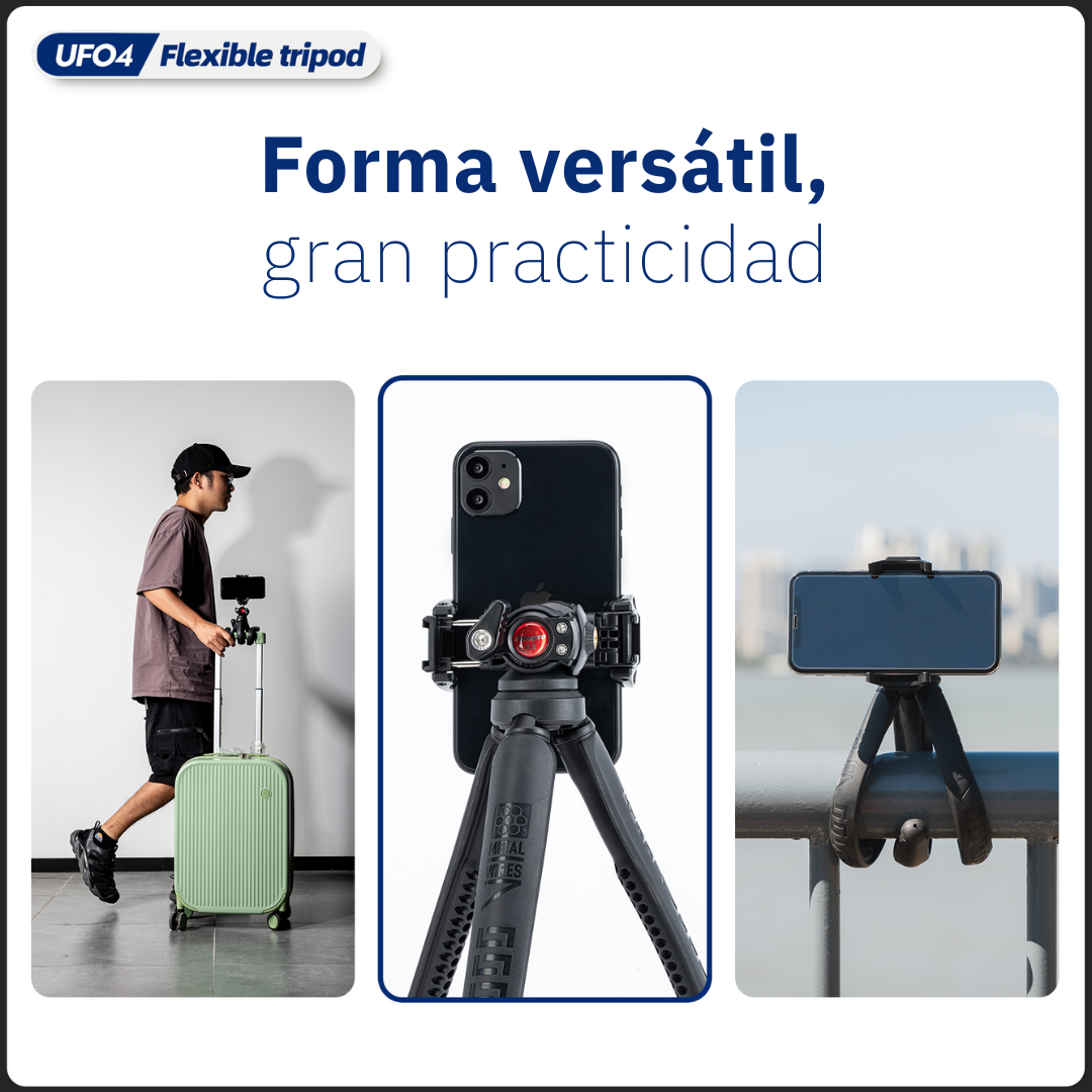 Fabricado con un núcleo de aleación de aluminio y recubierto con goma antideslizante, este trípode combina ligereza y resistencia. Su diseño flexible permite envolverlo alrededor de objetos como barandillas, ramas o tubos, ofreciendo estabilidad en cualquier entorno. Pesa solo 310 g, pero soporta hasta 1.5 kg, lo que lo convierte en la opción perfecta para creadores de contenido que buscan portabilidad sin sacrificar calidad.